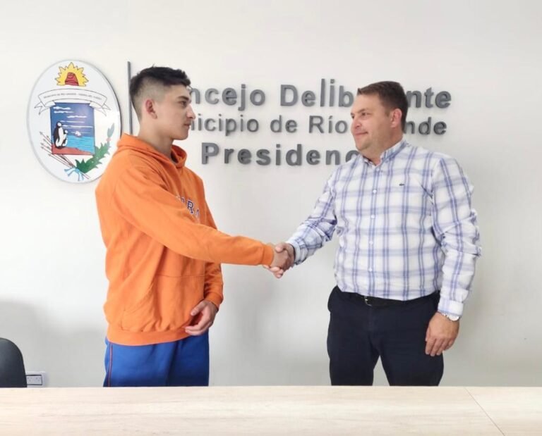 VIERNES, 11 de diciembre de 2021.- El Presidente del Concejo Deliberante de Río Grande Raúl von der Thusen, recibió al luchador riograndense Máximo Miranda, que se encuentra en plena preparación y búsqueda de la clasificación para los Juegos Suramericanos de la Juventud Rosario 2022 y que en las próximas horas estará viajando a un campo de entrenamiento al que fue