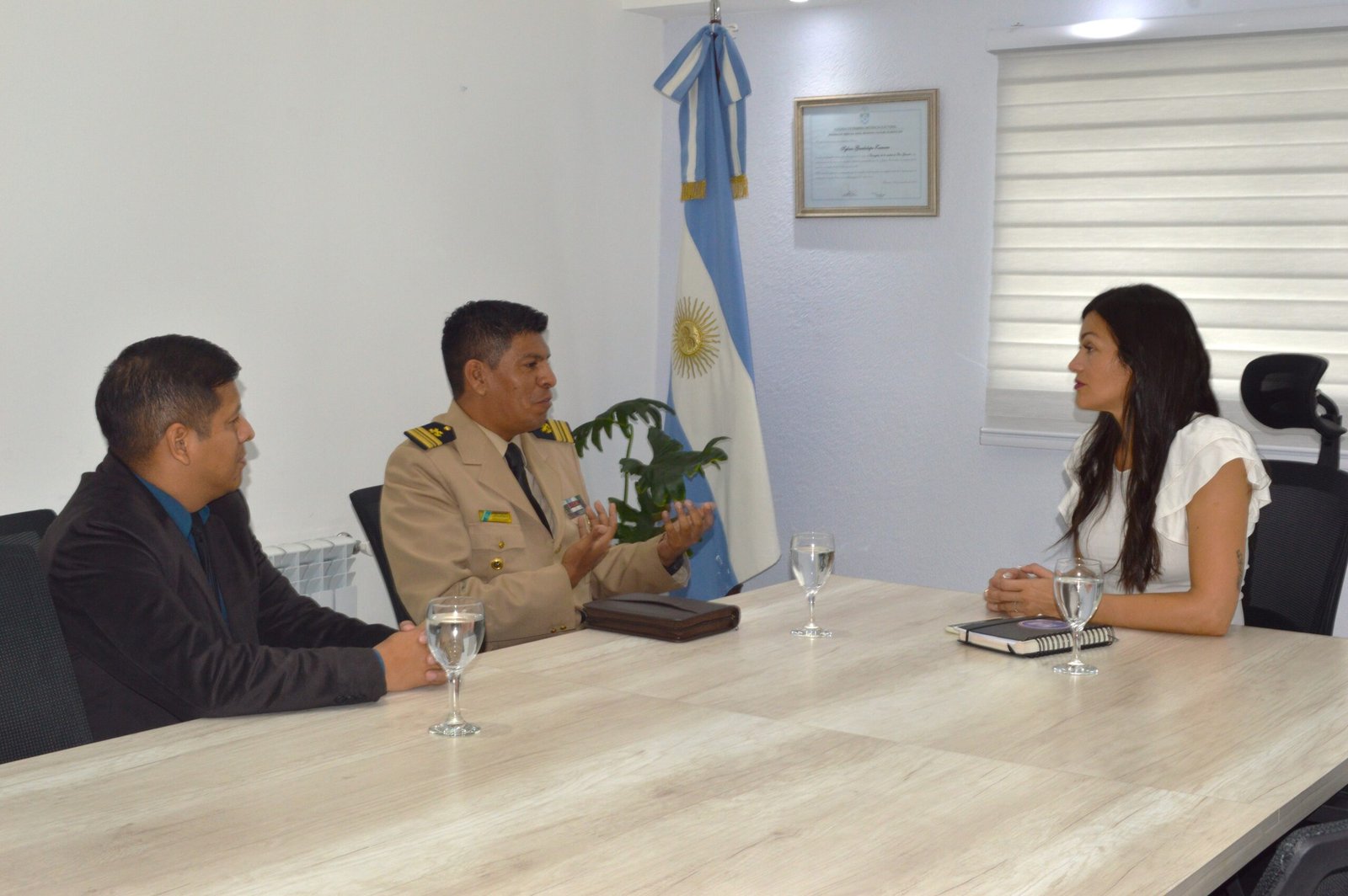 Tras el izamiento del Pabellón Nacional hizo uso de la palabra para agradecer a “todos los trabajadores del Concejo Deliberante que han trabajado arduamente para poder llevar a cabo este acto y poder estar cómodos en esta institución pública y también al área de Protocolo de la Legislatura provincial y a los trabajadores del Gobierno de la provincia”.